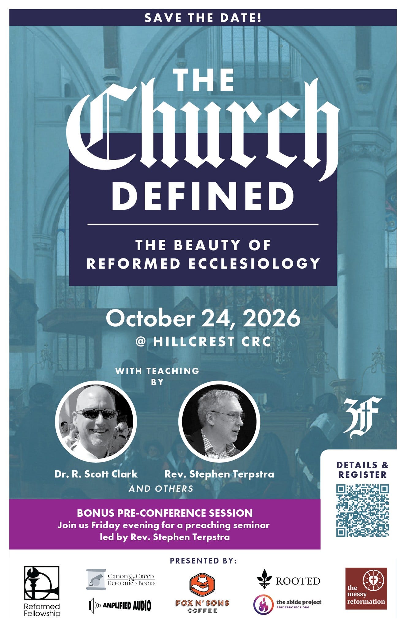 We are excited to announce that next fall, we will be hosting several speakers and theologians to help us think more deeply about “What is the Church?” Please mark your calendars for Oct 24 and use the link below to sign up. We are excited that Dr. R. Scott Clark will be joining us, along with Rev. Stephen Terpstra and others. There will be a special Pre-Conference preaching Seminar on Friday night Oct 23, with Rev. Stephen Terpstra. Past guests & speakers to Our Three Forms (3F) have come from the CRC, OPC, URC, PCA, and Alliance, etc. However, these events are designed for anyone who wants to grow in their understanding of Confessionally Reformed Christianity. Last year, we gave an overview of the Three Forms (Heidelberg Catechism, Belgic Confession, and Canons of Dort). This year marks the beginning of a three-year project.